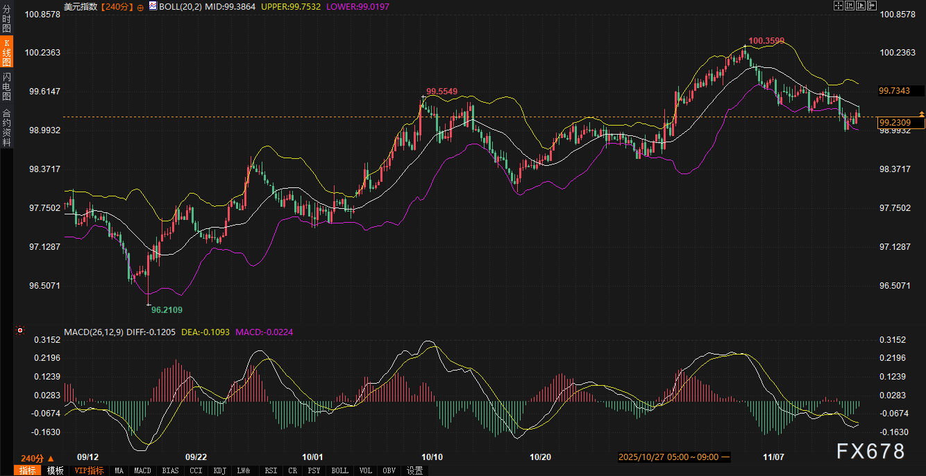 汇通财经APP讯——周五(11月14日),美债收益率显著回落,10年期收益率下跌1.17%至4.063%,现货黄金同步承压,下跌1.32%至4116.23美元/盎司。美元指数微涨0.07%至99.2307,未随债市波动大幅走强,凸显其韧性。全球央行黄金持有价值首次超过美债持有,引发市场对储备多元化的关注,但未触发系统性抛售。美联储降息预期与政府关门危机的缓解正重塑债市格局,并通过收益率曲线传导至美元与黄金。