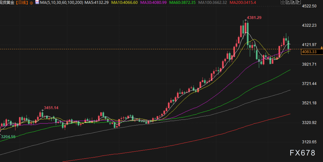 受美联储官员鹰派言论影响,黄金价格在上周五遭遇大幅抛售。现货金当日下跌1.9%,收报每盎司4092.72美元,盘中一度跌超3%;12月交割的美国期金收跌2.4%,报4094.20美元。